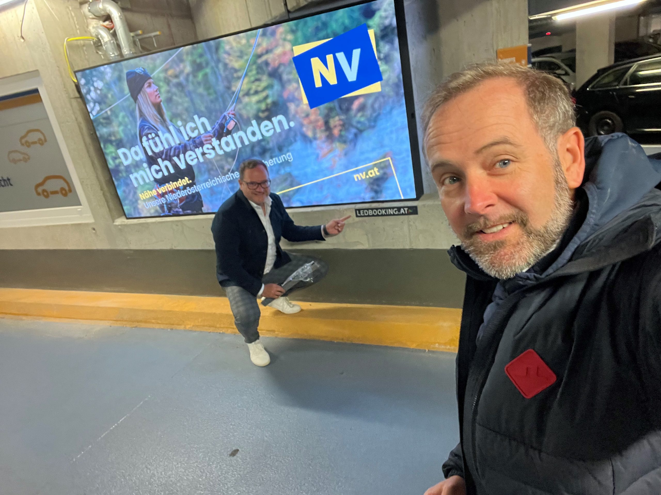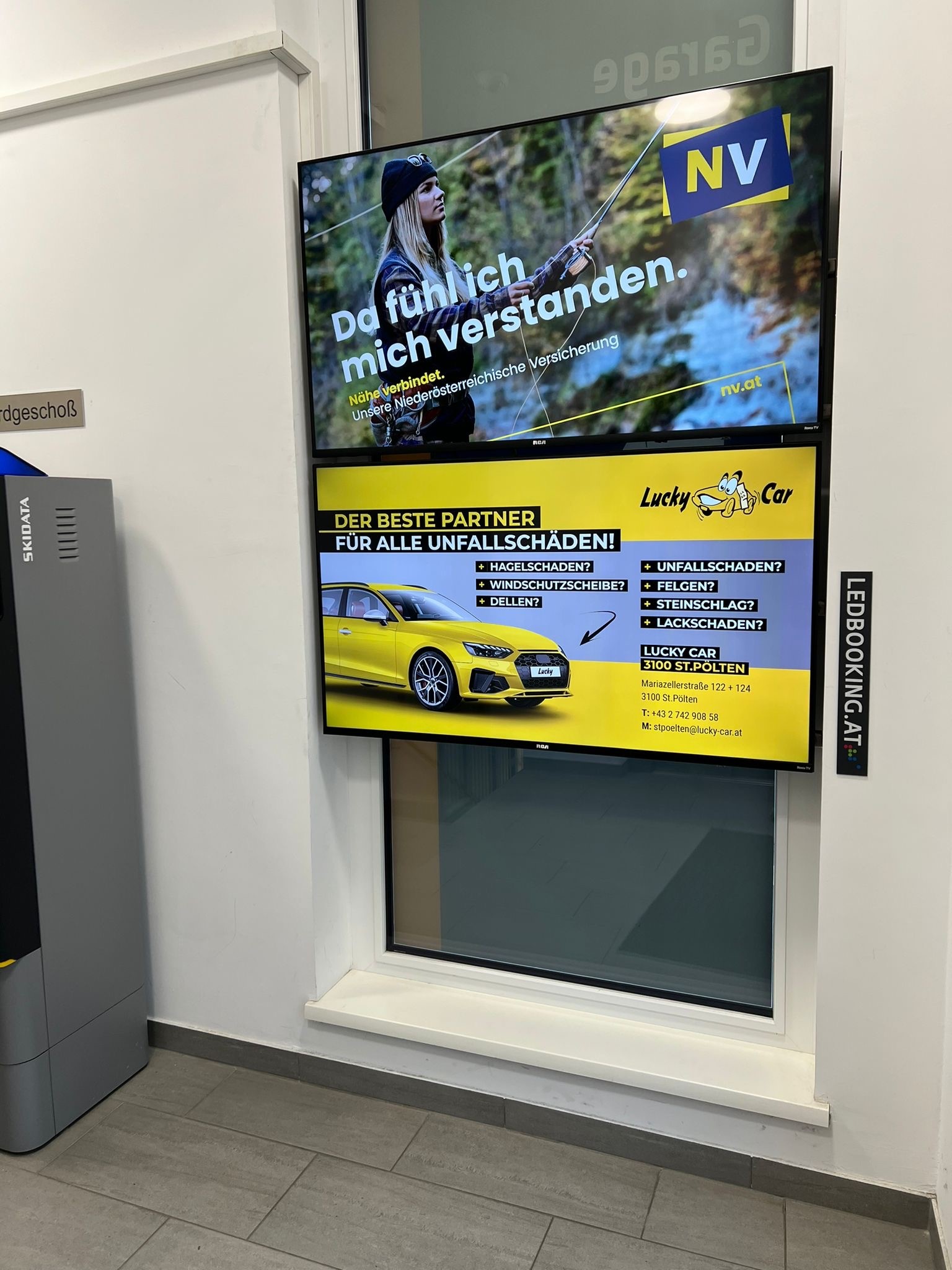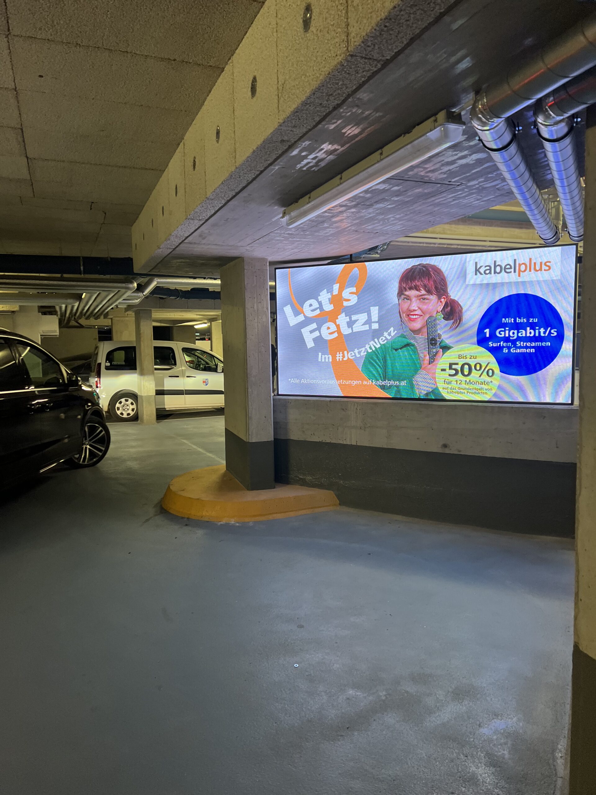 Seit April 2024 betreiben wir neben den bestehenden drei LED Walls in der Rathausplatz-Garage auch drei LED-Wände sowie zwei LCD-Bildschirme (direkt beim Ticketautomat) in der Karmeliterhof-Garage, um unsere Kunden im Zentrum der Landeshauptstadt zu präsentieren.